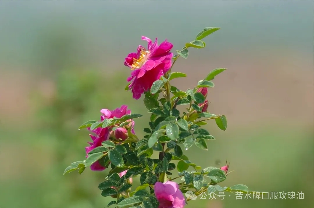 平均海拔2000米的高原之上,温带大陆性气候造就了巨大的昼夜温差,年均3000小时的充足日照,让苦水镇的油玫瑰在干旱少雨的土壤中逆势生长,积累出远超普通玫瑰的活性成分。是中国四大玫瑰品系之一,更是世界稀有的高原富硒品种,花瓣厚实多汁,香气馥郁纯正,从乾隆年间便有种植记载,如今更是被列为国家地理标志产品,种植面积与精油产量占据全国70%以上。